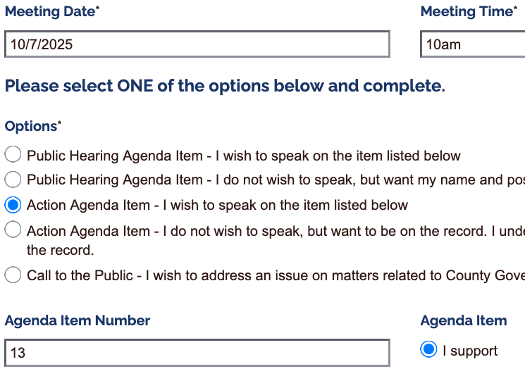 The meeting is at 10am, but you’ve got to fill out a Speaker Request Form by 9am that day. You can do that online at this link: https://www.cochise.az.gov/FormCenter/Board-of-Supervisors-17/Speaker-Request-Form-127